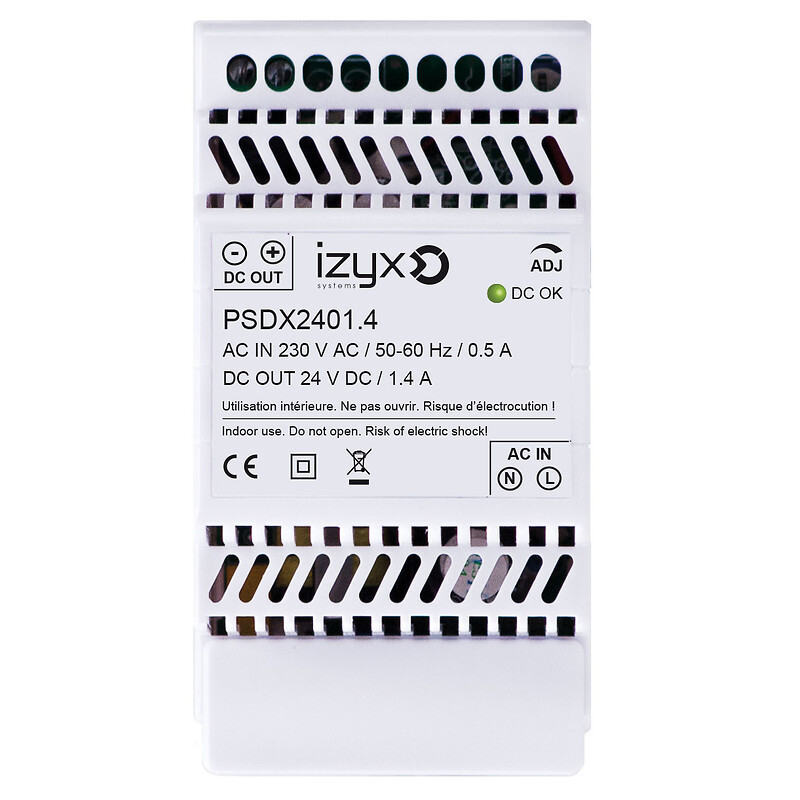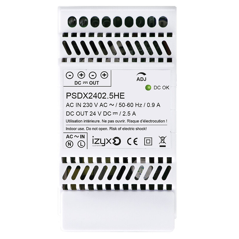 La gamme : Pour alimentation des ventouses et des gâches électriques.Norme du produit : Directive 2014/30/UE : EN55032:2015/A11:2020 - EN55035:2017 - EN61000-3-2:2019 - EN61000-3-3:2013/A1:2019. Directive 2014/35/UE : EN62368-1:2020/A11:2020. Directive RoHS 2011/65/UE. Règlement CE REACH 1907/2006. Directive 2012/19/UE | •
