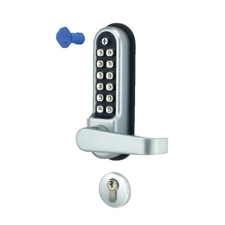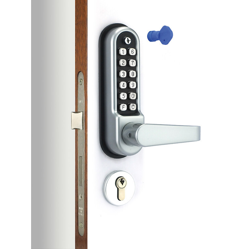 La gamme : Décondamnation de la porte au moyen d'un code.Usage intérieur/extérieur.Réversible.Sortie toujours libre.Livrée avec jeu de rosaces mais sans serrure ni cylindre. •