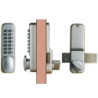 La gamme : Décondamnation de la porte au moyen d'un code.Usage intérieur/extérieur.Réversible.Sortie toujours libre.28103 J manœuvre par béquille : livrées avec une serrure tubulaire à larder.28104 J manœuvre par bouton : livrée avec pêne en applique. •