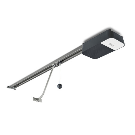 La gamme : Automatisme électromécanique pour porte de garage à usage domestique de type basculante ou sectionnelle.Pour porte jusqu'à une surface de 17 m².Platine électronique de gestion intégrée avec système anti-écrasement par encodeur.Gestion des accélérations en ouverture/fermeture.Réglage du niveau de sensibilité des sécurités.Déverrouillage manuel par cordon en cas de coupure de courant.Lampe de courtoisie intégrée. Installation rapide du rail.Autobloquant en position fermée grâce à l'irréversibilité anti-effraction du moteur.Norme du produit : Conforme à la norme CE. Directive 2014/53/EU (RED). Directive 2011/65/UE (RoHS II).Inclus dans le kit : 1 rail de 2x1,6 m à courroie et deux émetteurs ON2E. •