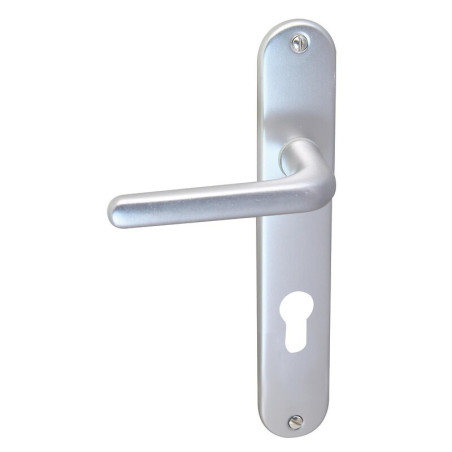 Finition : Argent - Main : Droite réversible - Entraxe de fixation de la plaque mm : 195 - Conditionnement : 1 - Type de béquille : Droite - Entraxe (mm) : 70 - Saillie (mm) : 60 - Dimension du carré (mm) : 7 - Unité de vente : (1 ensemble) •