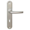 Main : Droite réversible - Finition : Argent - Entraxe de fixation de la plaque mm : 195 - Type de béquille : Courbée - Entraxe (mm) : 70 - Saillie (mm) : 50 - Dimension du carré (mm) : 7 - Unité de vente : (1 conditionnement) •