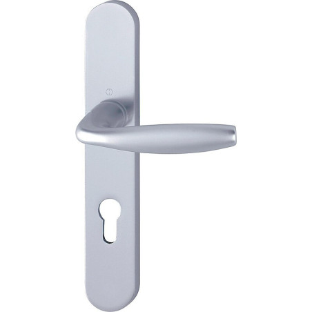 Finition : Argent - Main : Droite réversible - Entraxe de fixation de la plaque mm : 195 - Conditionnement : 1 - Type de béquille : Oblong - Entraxe (mm) : 72 - Saillie (mm) : 56 - Dimension du carré (mm) : 8 - Épaisseur de la porte (millimètre (mm)) : 38 à 47 - Unité de vente : (1 ensemble) •