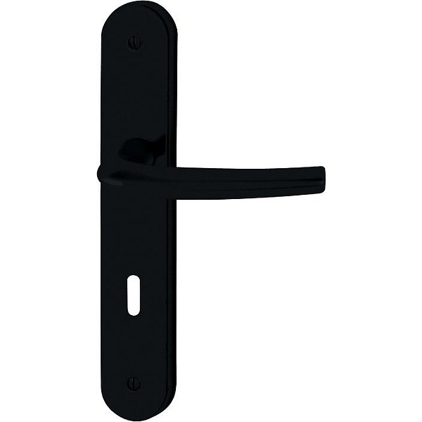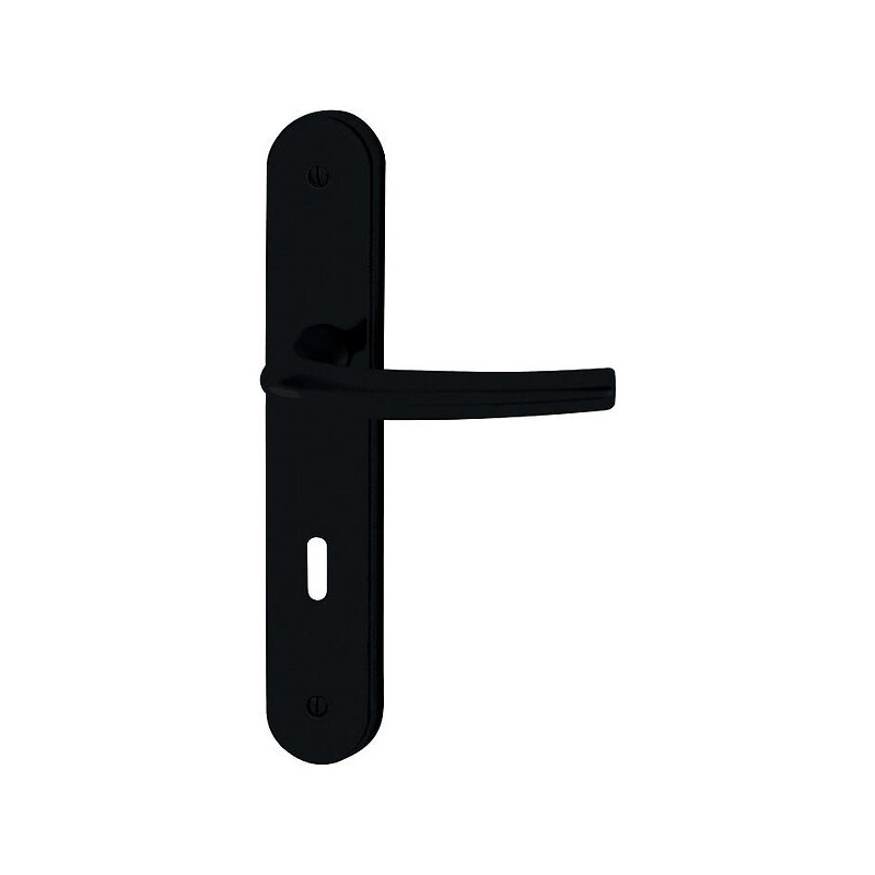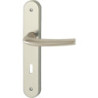 Main : Droite réversible - Entraxe de fixation de la plaque mm : 195 - Conditionnement : 1 - Type de béquille : Courbée - Entraxe (mm) : 70 - Saillie (mm) : 55 - Dimension du carré (mm) : 7 - Épaisseur de la porte (millimètre (mm)) : 40 à 46 - Unité de vente : (1 ensemble) •