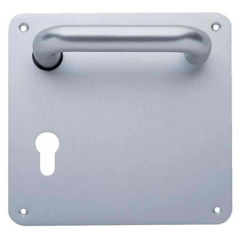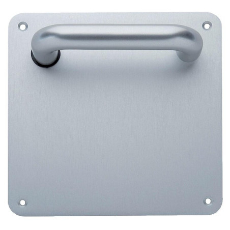 La gamme : Plaques pour les portes dans les collectivités, hôpitaux ou écoles. Dimensions de la plaque : 170 x 170 x 2 mm.Entraxe : 70 mm. Saillie : 53 mm.Pour porte d'épaisseur : 40 mm.Réversible. •