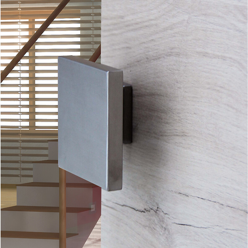 Bouton de porte fixe carré déporté sur rosace en inox brossé - CADAP