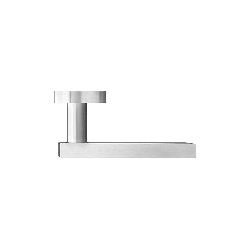 La gamme : Béquilles doubles sur rosace.Carré de 7 et fourreau serrure carré de 8 mm.Épaisseur de porte maximum : 45 mm.Norme du produit : Conforme à la norme DIN 1906 cat. 3.Livré avec visserie et carré. •