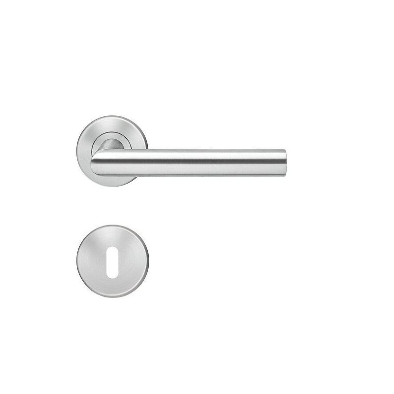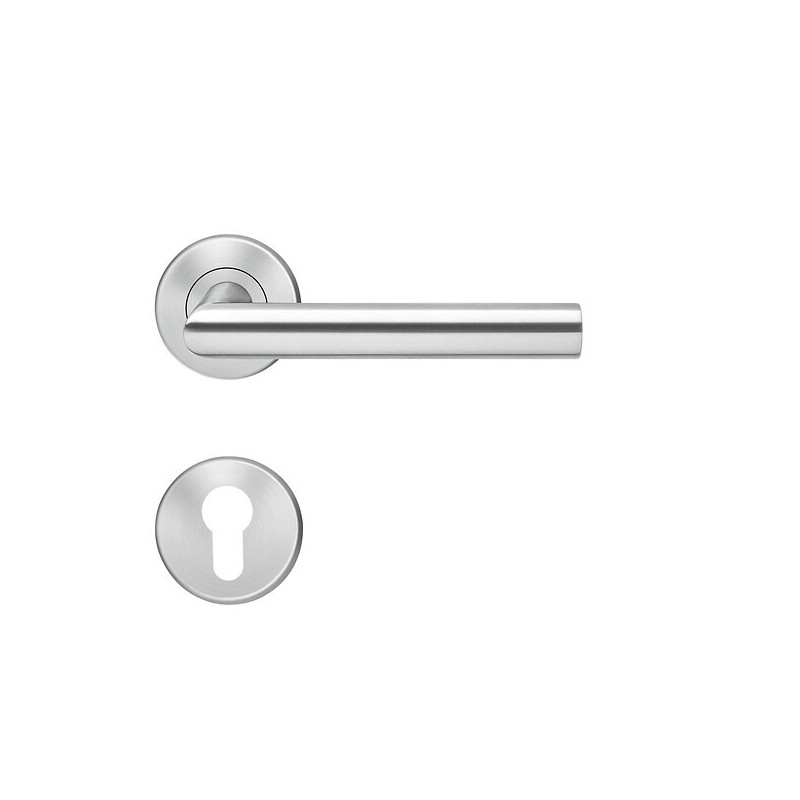 Matière : Inox - Finition : Inox satiné - Modèle : E300 - Conditionnement : 1 - Forme de la rosace : Ronde - Épaisseur de la porte maximum (mm) : 39 - Épaisseur de la porte minimum (mm) : 45 - Dimension du carré (millimètre (mm)) : 7x7 - Unité de vente : (1 ensemble) •
