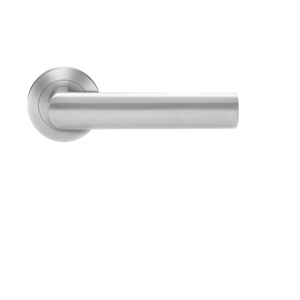 La gamme : Béquilles doubles sur rosace.Carré de 7 et fourreau serrure carré de 8 mm.Épaisseur de porte maximum : 45 mm.Norme du produit : Conforme à la norme DIN 1906 cat. 3.Livré avec visserie et carré. •