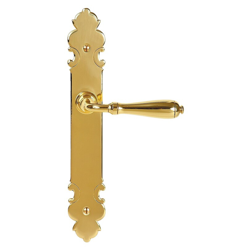 Finition : Laiton poli - Main : Droite réversible - Entraxe de fixation de la plaque mm : 195 - Conditionnement : 1 - Unité de vente : (1 ensemble) •