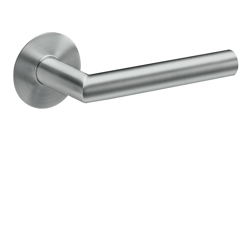 La gamme : Béquilles doubles sur rosace.Carré de 7 et fourreau serrure carré de 8 mm.Épaisseur de porte maximum : 45 mm.Livrées en boîte unitaire avec rosace de fonction. •