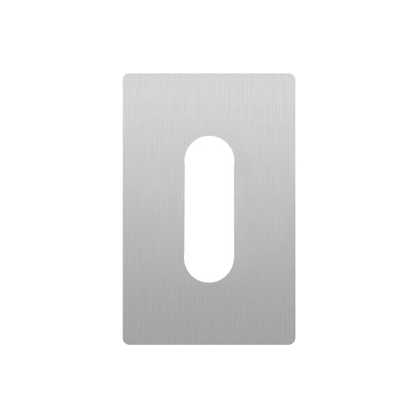 Finition : Inox satiné - Matière : Inox - Conditionnement : 1 - Forme de la rosace : rectangulaire - Hauteur (mm) : 46 - Largeur (mm) : 30 - Épaisseur (mm) : 2 - Unité de vente : (1 pièce) •