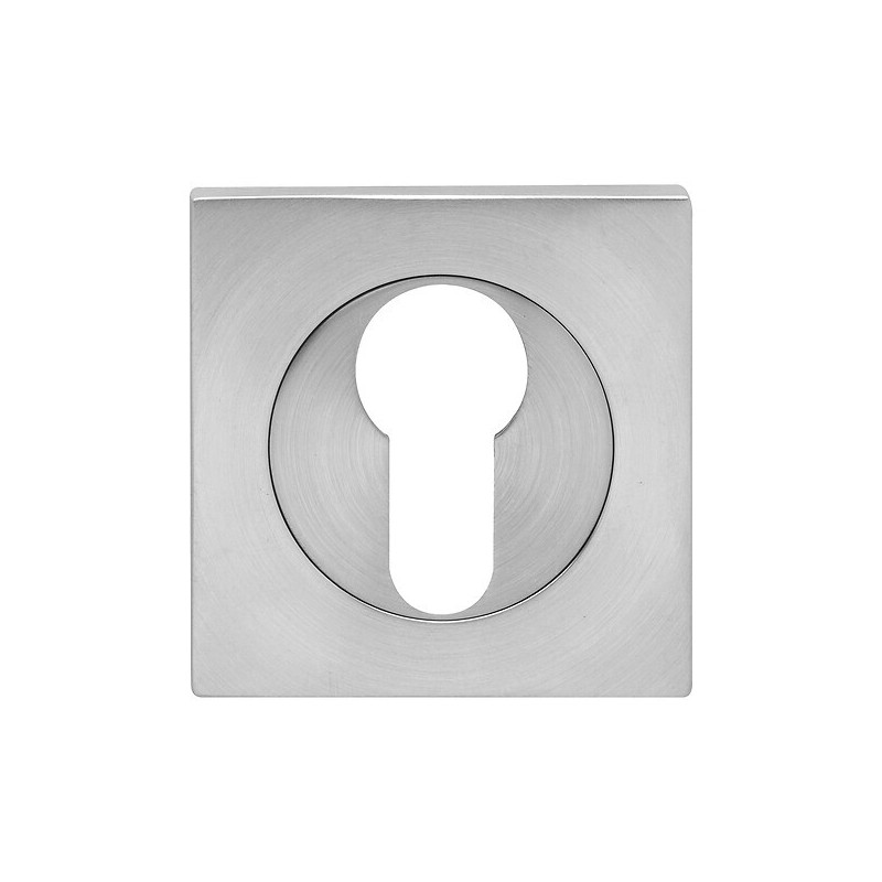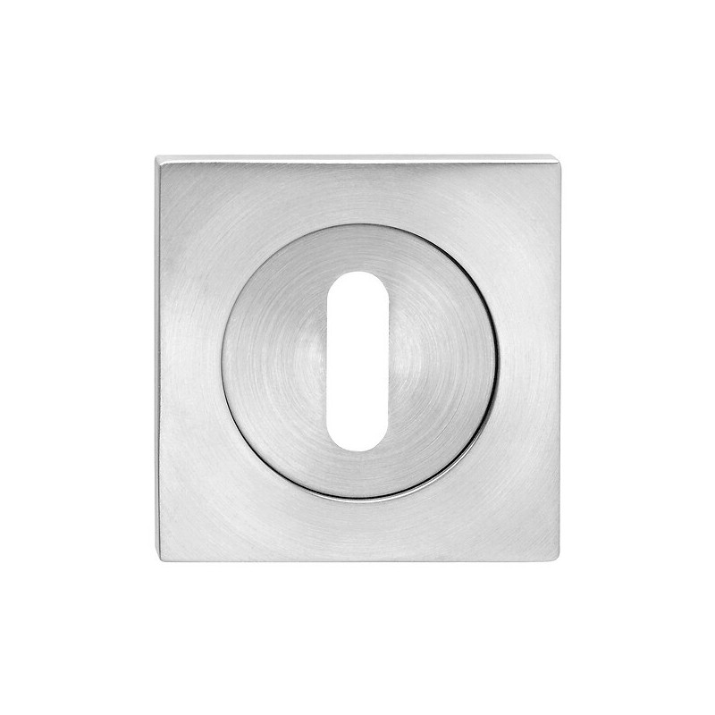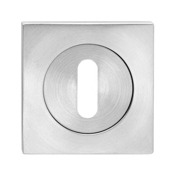 Matière : Inox - Finition : Inox satiné - Forme de la rosace : carree - Matière de la sous-rosace : zamak - Épaisseur (mm) : 10 - Hauteur (mm) : 52 - Largeur (mm) : 52 - Unité de vente : (1 pièce) •