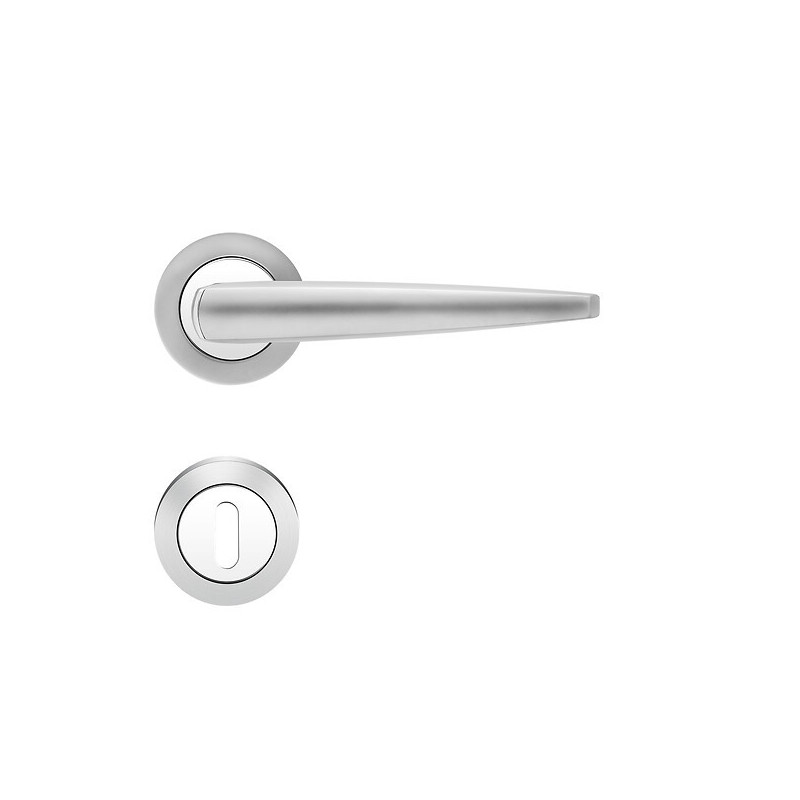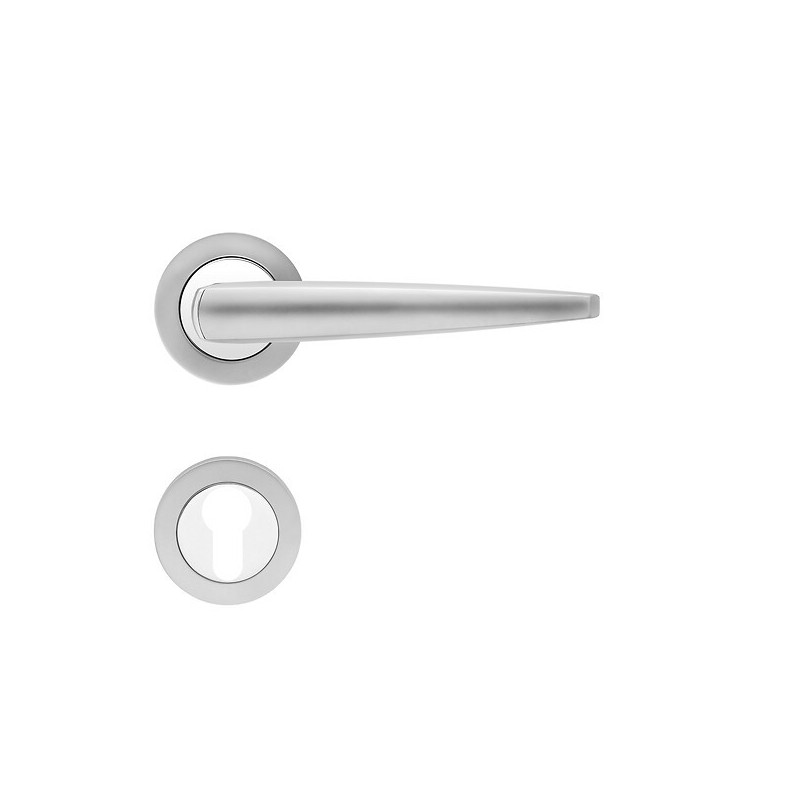 Matière : Zamak - Finition : Chromé satiné - Modèle : Denver - Conditionnement : 1 - Forme de la rosace : Ronde - Unité de vente : (1 ensemble) •