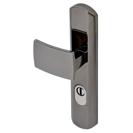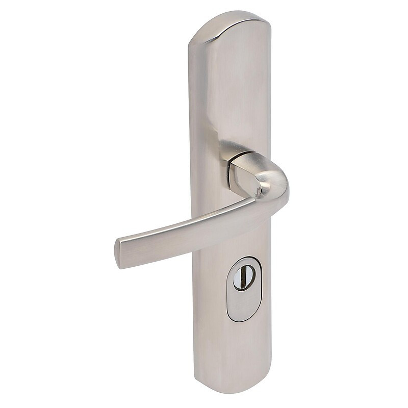 La gamme : Ensembles de sécurité équipés de béquilles doubles ou béquille et poignée de tirage (palière).Pour serrure axe à 50 mm minimum et entraxe à 70 mm.Entraxe de fixation standard 195 mm.Pour porte d’épaisseur de porte de 40 mm.Carré de 7 mm.Fixation invisible.Plaques renforcées avec 2 piliers anti-percement et protecteur de cylindre auto-adaptable breveté pour l’extérieur de la porte.Dimensions plaques : 245 x 56 mm (Ép.15 mm côté extérieur et 7 mm côté intérieur). •