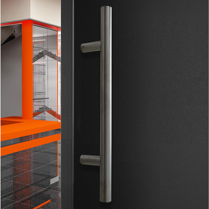 Poignée de porte battante diamètre 30 mm longueur 500 mm à entretoises entraxe 30 mm en inox 316 brossé •