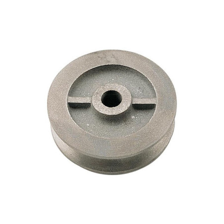 Matière : Acier - Finition : Zingué - Forme de la gorge : Ronde - Alésage (mm) : 10 - Diamètre (mm) : 50 - Épaisseur du moyeu (mm) : 22 - Épaisseur des joues (mm) : 20 - Unité de vente : (1 pièce) •
