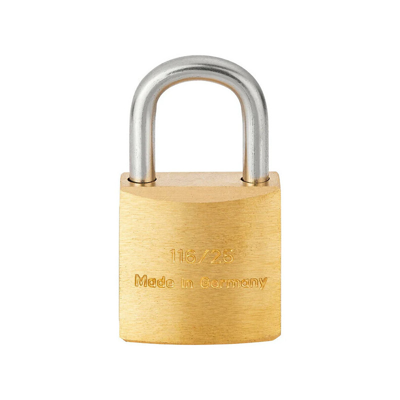 Type de cadenas : A clé - Matière de l'anse : Acier cémenté - Matière du coffre : Laiton - Unité de vente : (1 conditionnement) •
