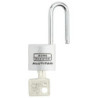 Type de cadenas : A clé - Matière de l'anse : Acier cémenté - Matière du coffre : Aluminium - Unité de vente : (1 conditionnement) •