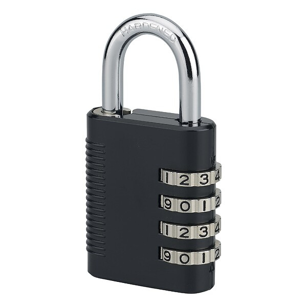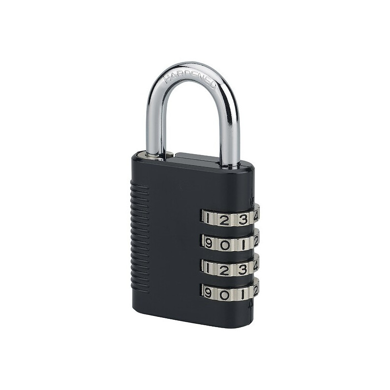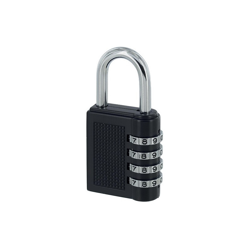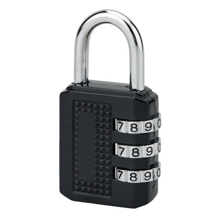 Type : Intérieur - Matière de l'anse : Acier nickelé - Type de fermeture : Combinaison modifiable - Nombre de molettes : 4 - Largeur du coffre (mm) : 40 - Diamètre de l'anse (mm) : 6 - Unité de vente : (1 pièce) •