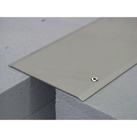 Matière : Inox - Finition : Brillant - Type de fixation du seuil : A visser - Largeur (mm) : 160 - Longueur (mm) : 2000 - Épaisseur (mm) : 5 - Unité de vente : (1 pièce) •