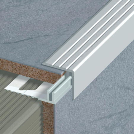 Matière : Aluminium - Finition : Anodisé - Type de fixation : À sceller ou à visser - Bande antidérapante : Non - Longueur (mm) : 2700 - Hauteur (mm) : 24 - Profondeur (mm) : 25 - Unité de vente : (1 pièce) •