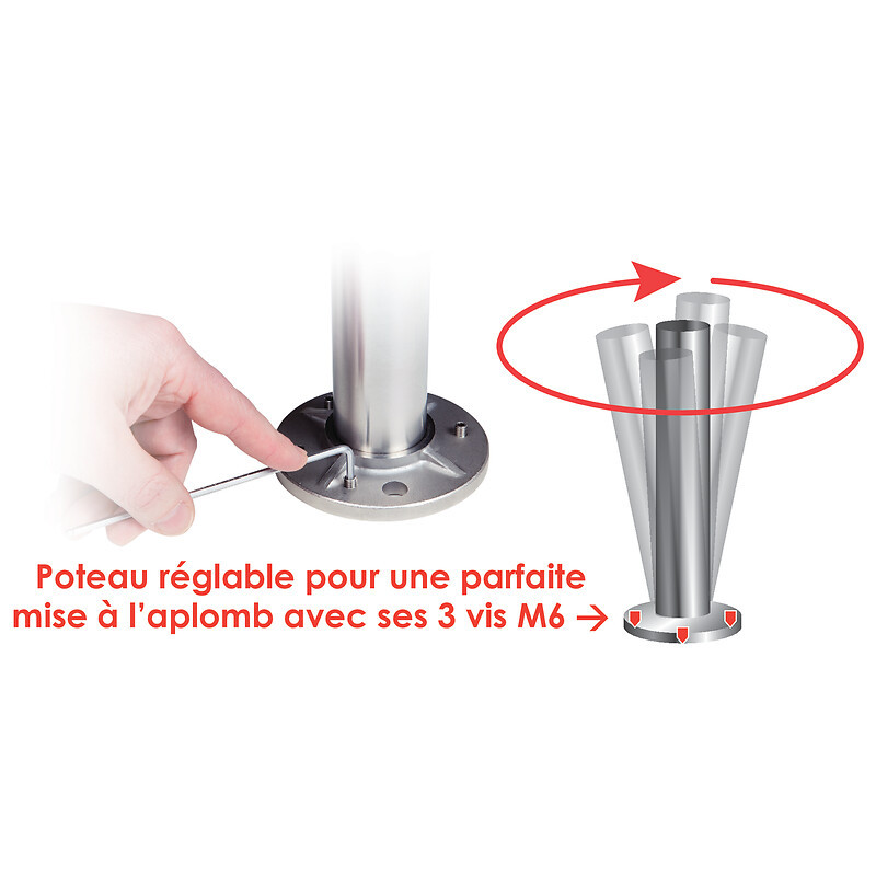 La gamme : Pour la réalisation et la pose de garde-corps et rambardes, assurez-vous du respect des normes de sécurité en vigueur.Livrée avec embase et sans cache. •