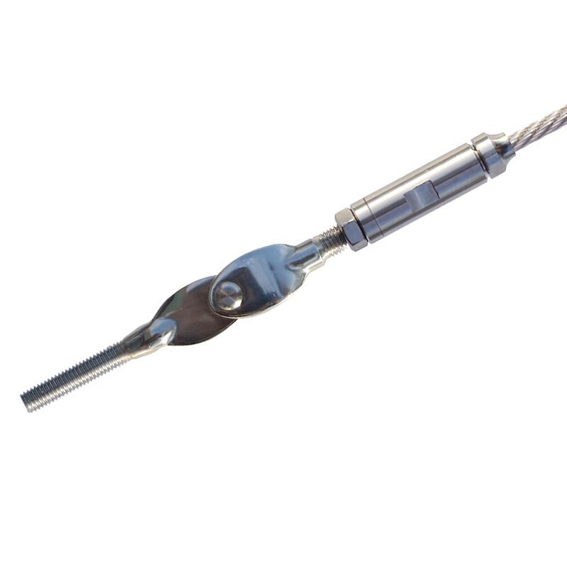 La gamme : Qualité INOX 316.Les kits de pose sont complets et pour un montage simple entre deux supports.Il prévoir un kit par ligne de montage.Pour une ligne horizontale prévoir un montage droit et pour toutes autres lignées inclinées (escaliers) prévoir un montage orientable.Longueur maximale entre les supports 10 m. •