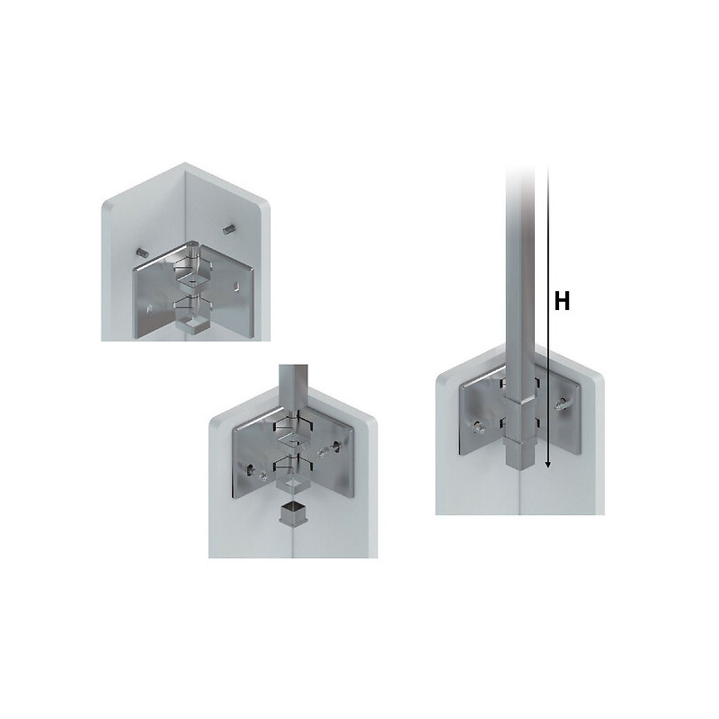 Support d'angle mural modèle 55 pour poteau à l'anglaise carré de 40 x 40 mm •