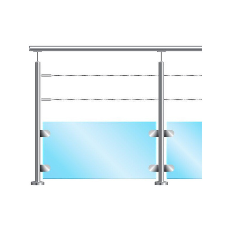Poteaux pré-équipés à la française - support main-courante Ø 42,4 mm + 2 support câble Ø 6 mm + pinces à verre •