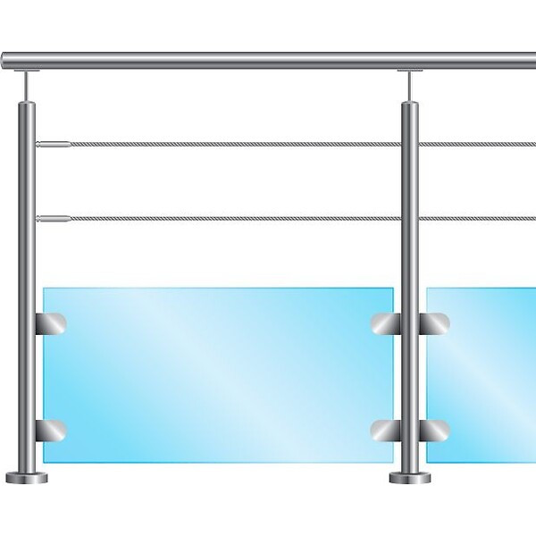 La gamme : Pour la réalisation et la pose de garde-corps et rambardes, assurez-vous du respect des normes de sécurité en vigueur.Livrés sans les câbles ni le verre pour le remplissage.Livrés sans la main courante et ses accessoires ( tube, embouts, coudes...). •