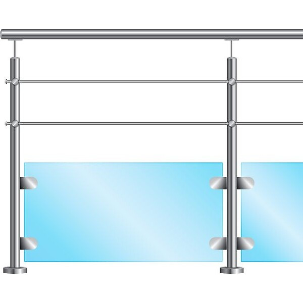 Poteaux pré-équipés à la française - support main-courante Ø42,4 et 2 barres Ø12 + pinces à verre •