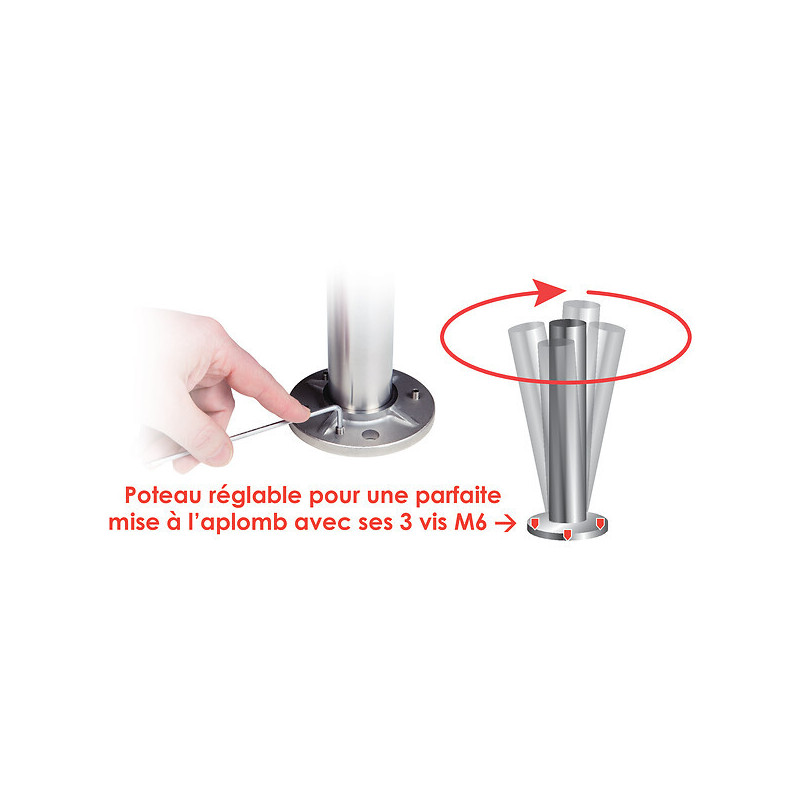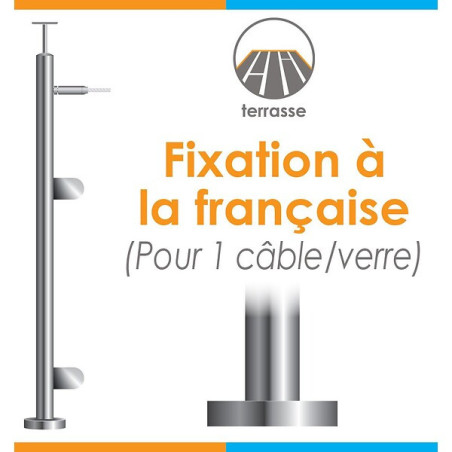 Poteau pré-équipé à la française - support main-courante Ø 42,4 mm et 1 support câble Ø 6 mm avec pinces à verre •