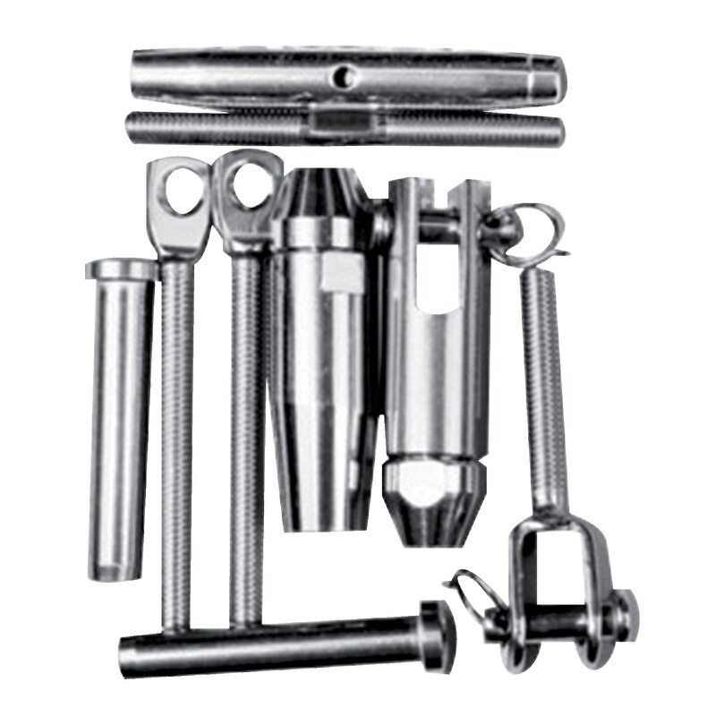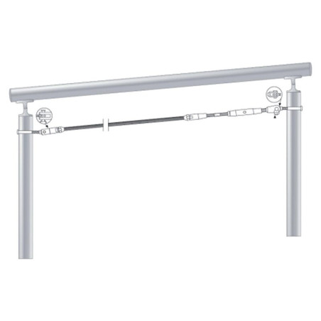 La gamme : Qualité inox 316. Les kits de pose sont complets et pour un montage simple entre deux supports. Il faut prévoir un kit par ligne de montage. Pour une ligne horizontale prévoir un montage droit et pour toutes autres lignes inclinées (escaliers) prévoir un montage orientable. Longueur maximale entre les supports de 10 m.Livrés sans câble. •