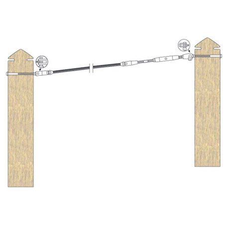 La gamme : Qualité inox 316. Les kits de pose sont complets et pour un montage simple entre deux supports. Il faut prévoir un kit par ligne de montage. Pour une ligne horizontale prévoir un montage droit et pour toutes autres lignes inclinées (escaliers) prévoir un montage orientable. Longueur maximale entre les supports de 10 m.Livrés sans câble. •