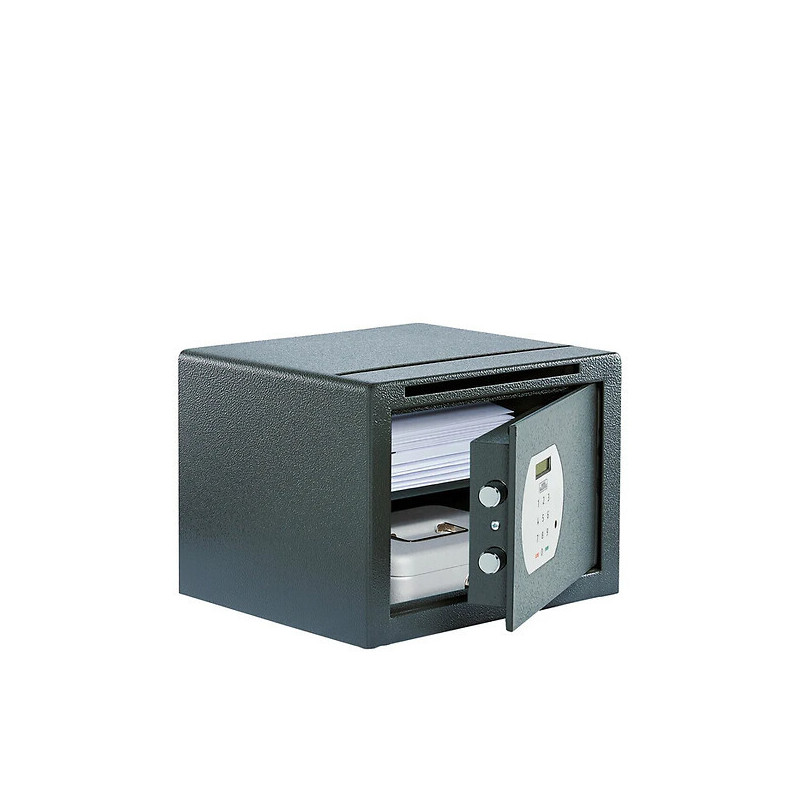 Finition : Anthracite - Type de verrouillage du coffre : À code électronique - Conditionnement : 1 - Nombre de pênes horizontaux : 2 - Nombre de chiffres maximum pour la programmation : 8 - Poids (kg) : 15.26 - Volume (L) : 20.50 - Hauteur (mm) : 255 - Largeur (mm) : 350 - Profondeur (mm) : 300 - Unité de vente : (1 pièce) •