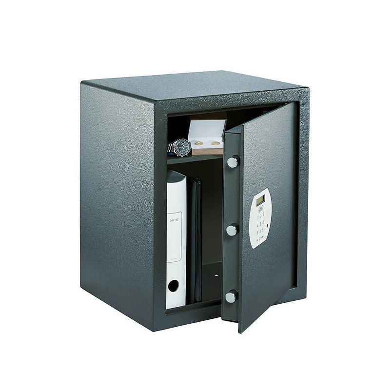 Livrés avec 2 clés pour la version à clé et 4 piles 1,5 V type LR6 et clé de secours pour la version à code. Livrés avec étagère amovible sauf petit modèle. •