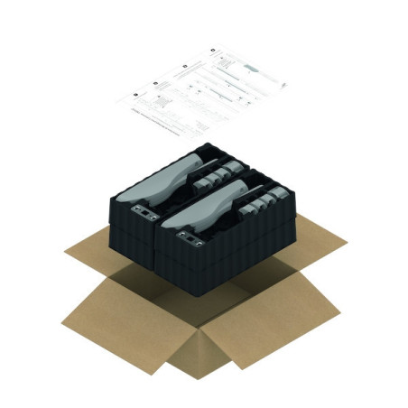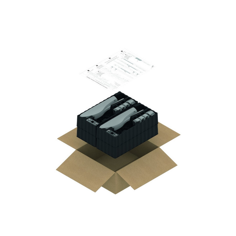 Pack de 4 boîtiers et gâches de crémone pompier à poignée basculante. Les tringles sont à commander séparément.