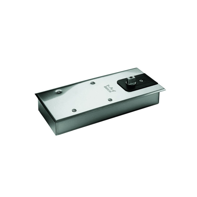 Le fabricant atteste que ce produit est conforme à la norme EN 1154.Pivot à frein économique spécialement prévu pour portes à double action. Marquage CE : - EN 3 fixe pour porte de 950 mm de largeur. - EN 4 fixe pour porte de 1100 mm de largeur. Angle d'ouverture maxi 130°. 2 vitesses de fermeture réglable par valve : - 130° à 20°. - 20° à 0°. Clapet de surpression intégré. Couple thermo-constant. Réglage dans la boîte de scellement : - 9 mm latéralement. - 8 mm en longueur. - 6 mm en hauteur. Fixation de la plaque de recouvrement sur le boîtier. Existe aussi en version avec arrêt à 90°.Plaque de recouvrement et ferrures haute et basse. axe amovible. carré ou rectangulaire à commander séparément.