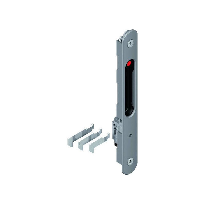 Coquille simple fermeture pour coulissant aluminium DS8298 verrouillable - 3 crochets - gris alu