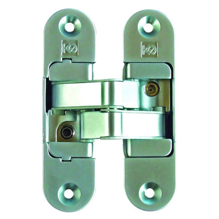 Convient porte à fleur de mur.Réglable en 3 dimensions.Epaisseur mini de la porte : 40 mm.Poids maxi de la porte : 50 kg avec 2 charnières. 70 kg avec 3 ou 4 charnières.Réversible.Garantie 2 ans