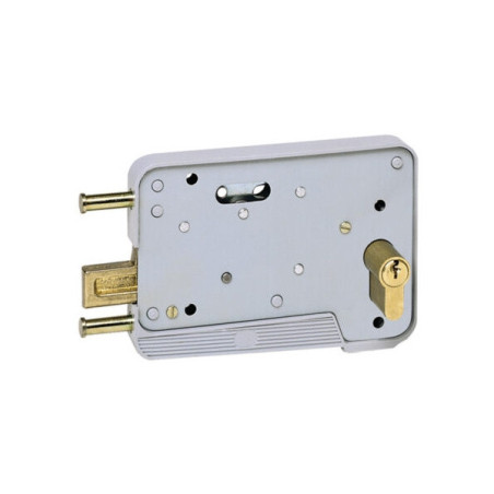 Serrure mono-point en applique à pêne levant pour vantail à déplacement horizontal. Livrée sans cylindre.