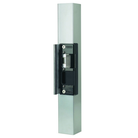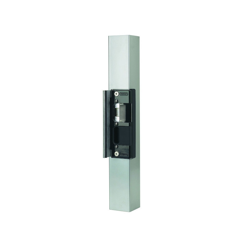 Gâche électrique pour portail battant. Cette gâche électrique est équipée d'un système à double blocage qui supporte une force de traction de 500 kg. Le récepteur du pêne dormant est renforcé avec de l'acier inoxydable. Cette innovation rend la gâche encore plus robuste. La solution parfaite pour votre contrôle d'accès. Compatible avec les serrures de la gamme L. Nouveau: récepteur du pêne dormant en inox et renforcé Pour profils de 50 mm et plus Alimentation: 12 V AC/DC Consommation Emission : 1 A Consommation Rupture : 1.5 A Etanche. insensible aux changements climatiques Nouvelle génération extrêmement résistante à la corrosion