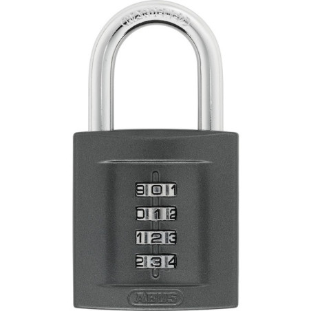 Par le système de fermeture. ce type de cadenas très compacts permet des utilisations très variées et peut être également utilisé par différentes personnes. Il permet de verrouiller entre autres les bagages. les boîtes à outils ou les casiers de vestiaires de clubs sportifs.Cadenas disposant d’une combinaison de 4 chiffres réglable par l’utilisateur. il n’a pas besoin de clé et est donc facile à emporter et parfait pour les loisirs.Boîtier robuste en fonte de zinc coulée sous pressionAnse en acier trempéDouble verrouillage de l’anse158/50: code personnalisable à 4 chiffresCS : anse blindée: pratiquement inaccessible aux outils d‘attaques conventionnels
