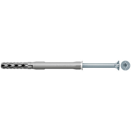 Coloris : Gris - Matière : Nylon / Acier électrozingué - Forme de tête : Fraisée - Conditionnement : 50 - Longueur (mm) : 245 - Diamètre de la cheville (mm) : 10 - Diamètre de la vis (mm) : 7 - Unité de vente : (1 boîte) •