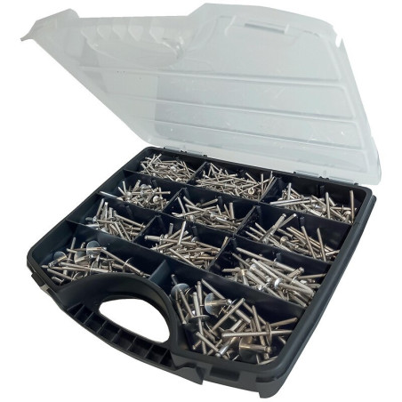 Coffret de 500 rivets standards clous et têtes inox A2 têtes rondes et extra larges - DEGOMETAL