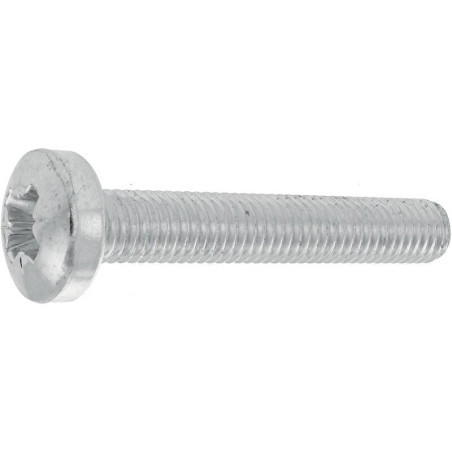 Vis à métaux tête cylindrique bombée large empreinte pozidriv acier zingué blanc entièrement filetées •