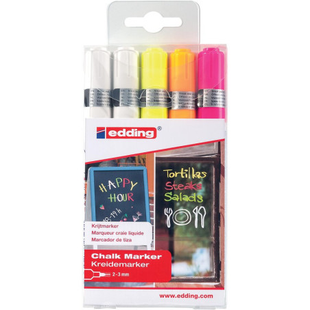 Pochette de 5 marqueurs craie liquide pointe ogive E 4095 - EDDING