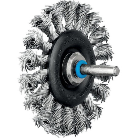 Matière de la brosse : Fil Inox - Conditionnement : 10 - Largeur (mm) : 6 - Diamètre de fil (mm) : 0.35 - Diamètre extérieur (mm) : 76 - Diamètre de la tige (mm) : 6 - Unité de vente : (1 boîte) •
