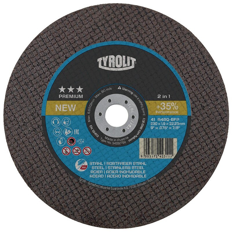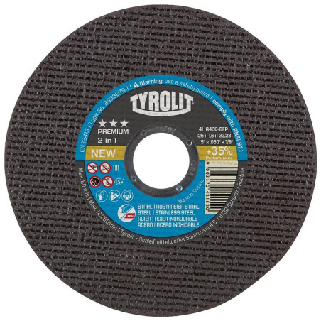 Disques à tronçonner Premium 2 en 1 moyeu plat coupe acier/inox - TYROLIT